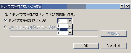 「ドライブ文字またはパスの編集」ウィンドウが出たら、![]() 変えたいレターを選択。 |